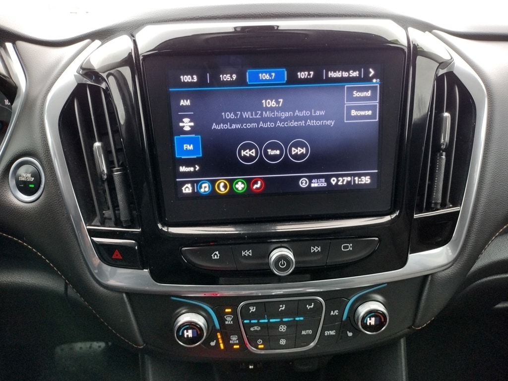 2020 Chevrolet Traverse LT AWD 7-Passenger SUV, Driver Confidence Package, Remote Start, Heated Seats, Cloth seating with 2nd-row captains chairs, 3rd-row 60/40 split bench seat, Power driver seat with lumbar, Adjustable steering wheel, Leather-wrapped steering wheel, Front and rear reading lamps, Driver and passenger illuminated vanity mirrors, 8-inch touchscreen, AM/FM radio, Apple CarPlay & Android Auto, Bluetooth audio & hands-free calling, MP3 capability, Auxiliary audio input, WiFi hotspot, Universal garage door opener, Smart device integration, Satellite radio compatibility, Power liftgate, Remote engine start, Cruise control, Power windows, Power door locks, Steering wheel audio controls, Remote trunk release, Multi-zone climate control with rear air conditioning, Blind Spot Monitor, Rear Cross-Traffic Alert, Rear Park Assist, Heated mirrors, Safety alert features through in-vehicle settings
