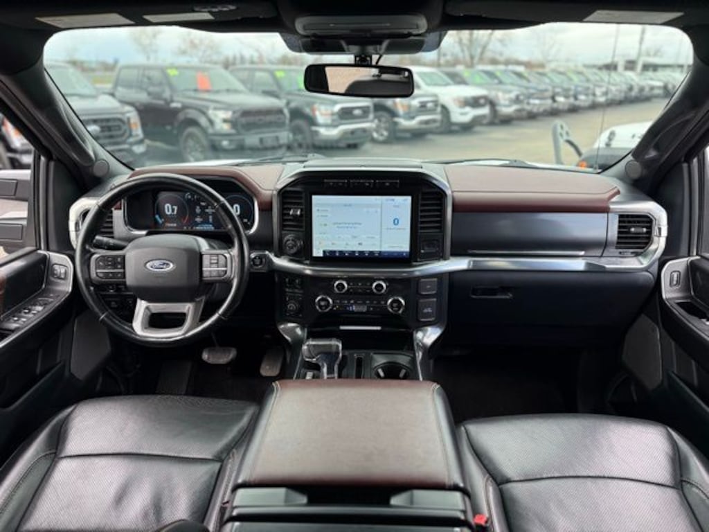 The spacious and well-appointed interior of this F-150 Lariat is designed to keep you comfortable and connected on the road. Leather-trimmed bucket seats, a heated steering wheel, and second-row heated seats provide a luxurious touch. The connected built-in navigation system and premium B&O sound system will keep you entertained and informed during every journey.