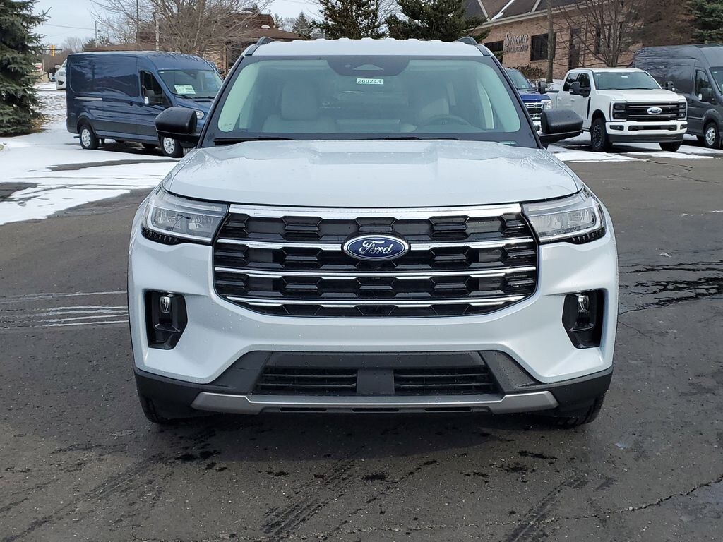 This 2026 Ford Explorer Active 4WD is a well-balanced SUV designed for Michigan drivers who want everyday efficiency without sacrificing space, safety, or capability. Finished in Space White Metallic with an ActiveX interior, this Explorer delivers a clean, modern look paired with the versatility families and commuters rely on.