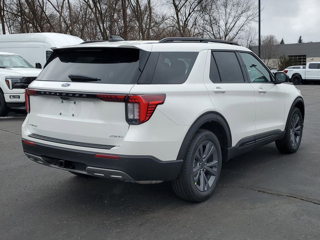 The Star White Metallic Tri Coat exterior is a key highlight. This premium paint adds depth and shine, giving the Explorer a more refined and high end appearance compared to standard white finishes.