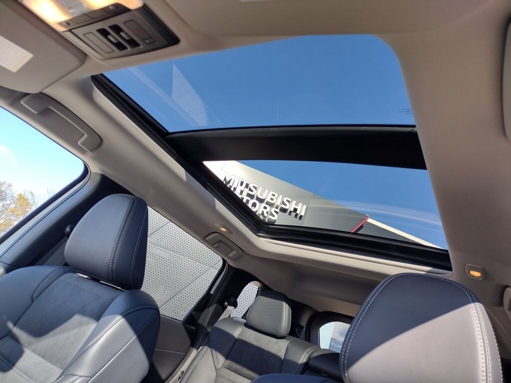 Inside, the Outlander SE provides synthetic leather seating with heated front seats, an 8-way power driver seat with lumbar support, and 7-passenger seating with a split-folding second row. Technology includes a 12.3-inch digital driver display, 9-inch navigation system with wireless Apple CarPlay, Android Auto, HD Radio, Bluetooth, a wireless charger, multiple USB ports, FAST-Key entry with push-button start, Mitsubishi Connect, and a multi-view camera system. Added SE Tech Package equipment includes a panoramic sunroof, auto-dimming rearview mirror, and BOSE premium audio system.