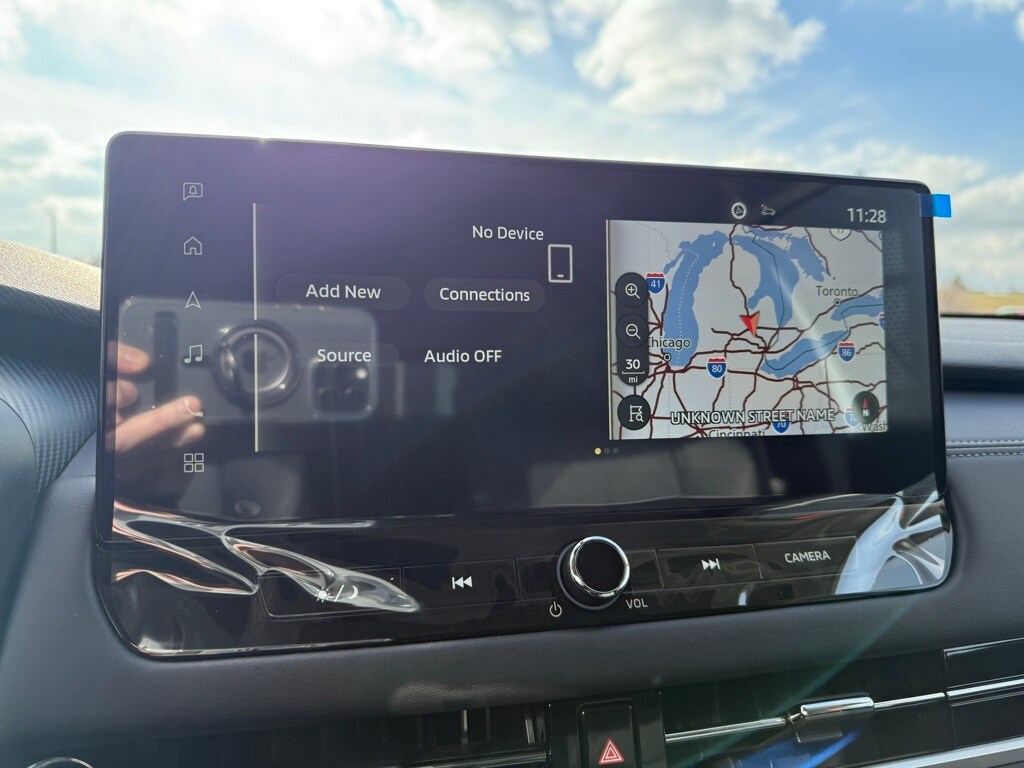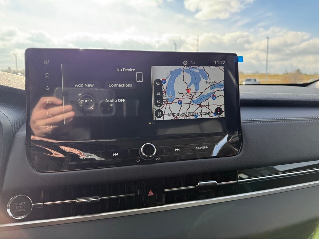 The interior includes synthetic leather and suede seating, heated front seats, an 8-way power driver seat, seating for seven, and a 40:20:40 split second-row seat. Technology features include a 12.3-inch Smartphone-link Display Audio system with navigation, wireless Apple CarPlay, wireless Android Auto, SiriusXM Traffic & Travel Link, a 7-inch multi-information display, wireless charging, Bluetooth, multiple USB-C ports, a multi-view camera system, dual-zone automatic climate control, FAST-Key entry with push-button start, and Homelink.