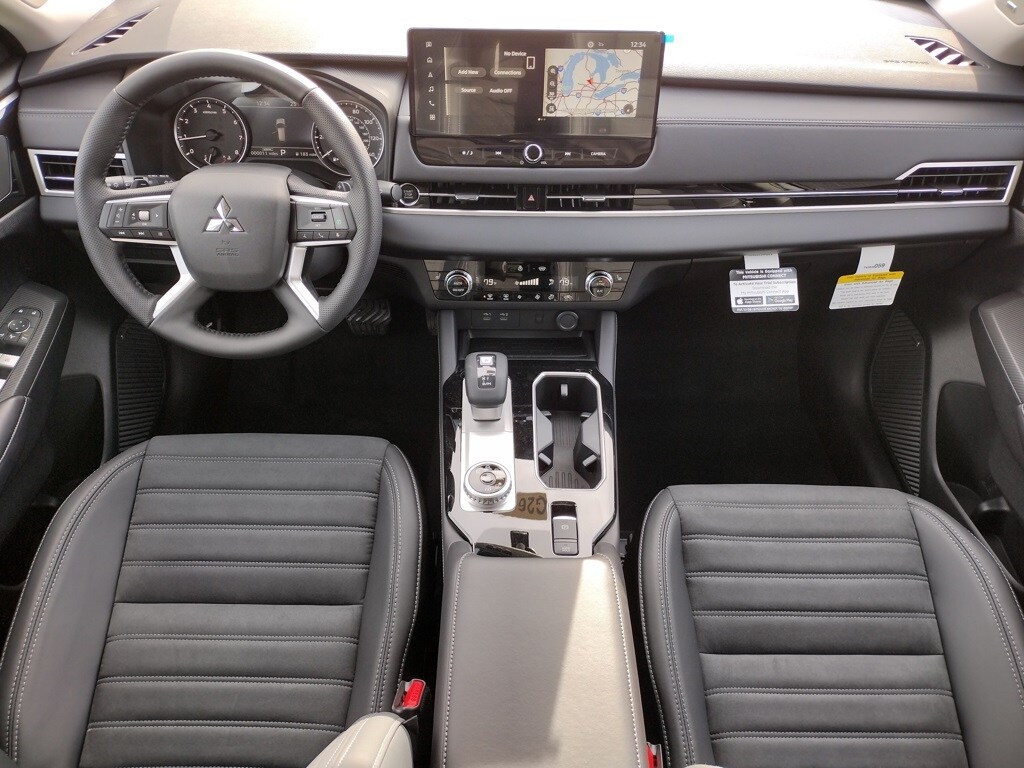 This 2026 Mitsubishi Outlander Trail Edition S-AWC is a four-door SUV powered by a 1.5L turbocharged DOHC four-cylinder engine paired with an 8-speed continuously variable transmission and Super All-Wheel Control. It is finished in Moonstone Gray Metallic with a black roof and meets 50-state emissions standards